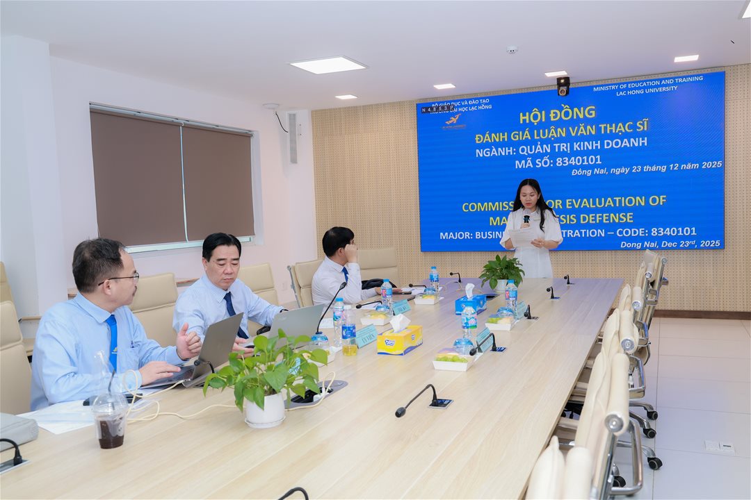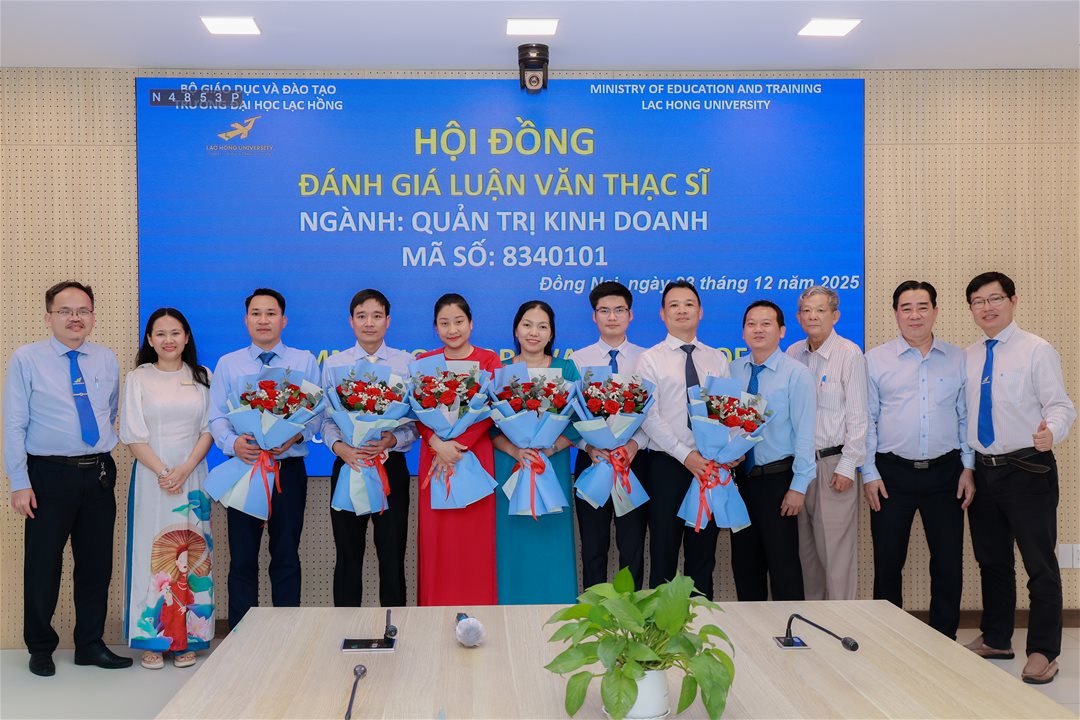 Ngày 23 tháng 12 năm 2025, tại phòng họp cơ sở 1 của Trường Đại học Lạc Hồng (LHU), 08 học viên ngành Quản trị kinh doanh đã xuất sắc hoàn thành và bảo vệ luận văn thạc sĩ của mình. Buổi bảo vệ diễn ra trong không khí trang trọng và đầy tính học thuật, đánh dấu một bước ngoặt quan trọng trong hành trình học tập và nghiên cứu của các học viên.