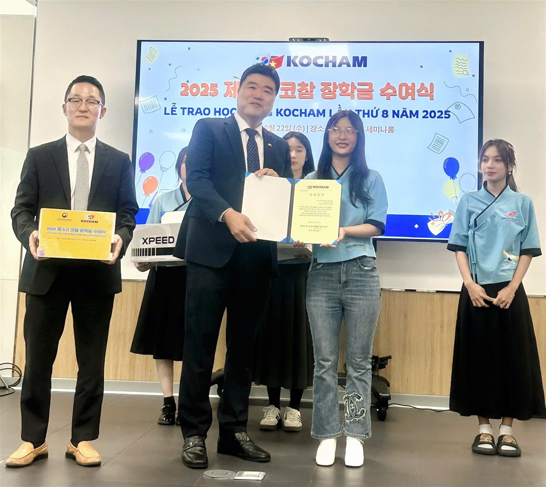 Đại diện Tổ chức KOCHAM trao học bổng đến sinh viên