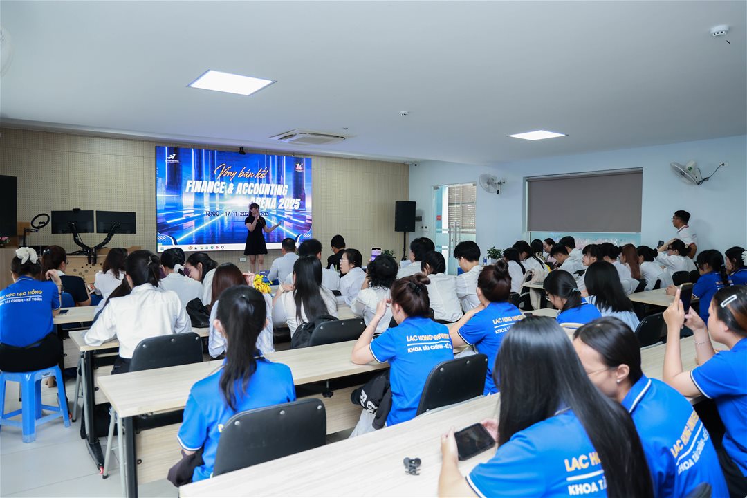 Chiều ngày 17/11/2025, tại phòng B203 – Cơ sở 1, Khoa Tài chính – Kế toán, Trường Đại học Lạc Hồng đã tổ chức thành công Vòng Bán kết Cuộc thi “Finance and Accounting Arena 2025” với sự tranh tài của 24 thí sinh xuất sắc nhất được tuyển chọn từ hơn 200 thí sinh tham gia vòng loại và vòng Bứt phá trước đó.