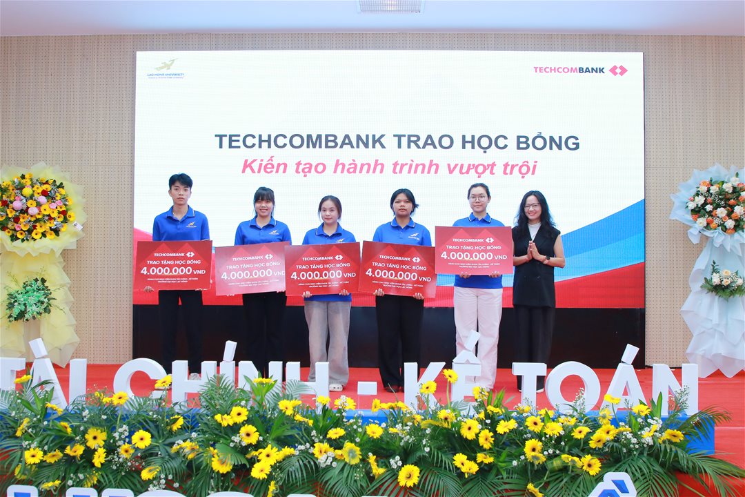 The highlight of the event was the formal signing of the MOU, which laid the foundation for implementing practice-oriented training activities between the two institutions. Immediately after the ceremony, Techcombank awarded scholarships worth 20 million VND to students of the Faculty of Finance – Accounting as a gesture of support and encouragement for their academic and professional development.