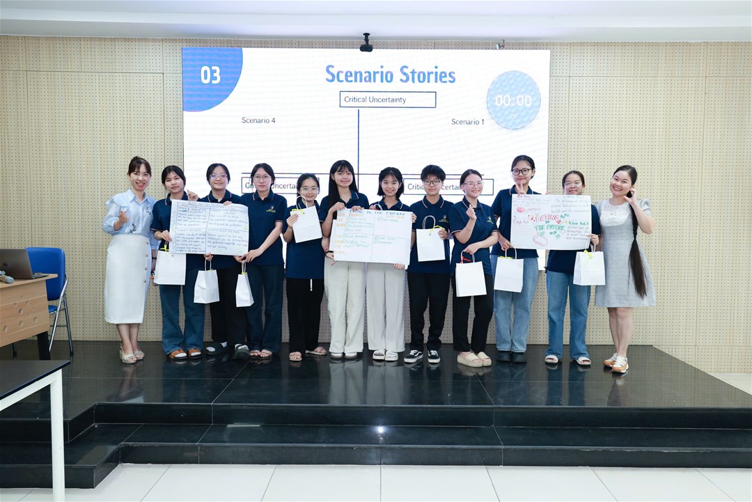 Thay vì lý thuyết thuần túy, sinh viên được trực tiếp tham gia mô hình Scenario Planning (Ma trận 2x2):